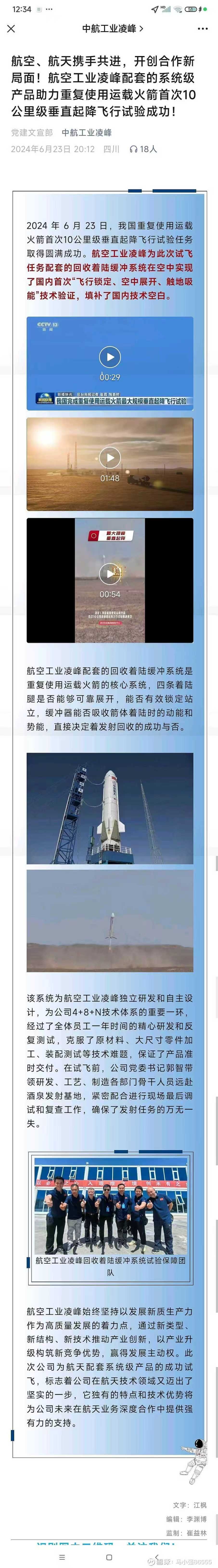 2024年6月23日,我国重复使用运载火箭首次10公里级垂直起降飞行试验任务取得圆满成功。航空工业凌峰(中航机载全资子公司)为此次试飞任务配套的回收着陆缓冲系统在空中实现了国内首次"飞行锁定、空中展开、触地吸能"技术验证.填补了国内技术空白。 航空工业凌峰(中航机载全资子公司)配套的回收着陆缓冲系统是重复使用运载火箭的核心系统,四条着陆腿是否能够可靠展开,能否有效锁定站立,缓冲器能否吸收箭体着陆时的动能和势能,直接决定着发射回收的成功与否。