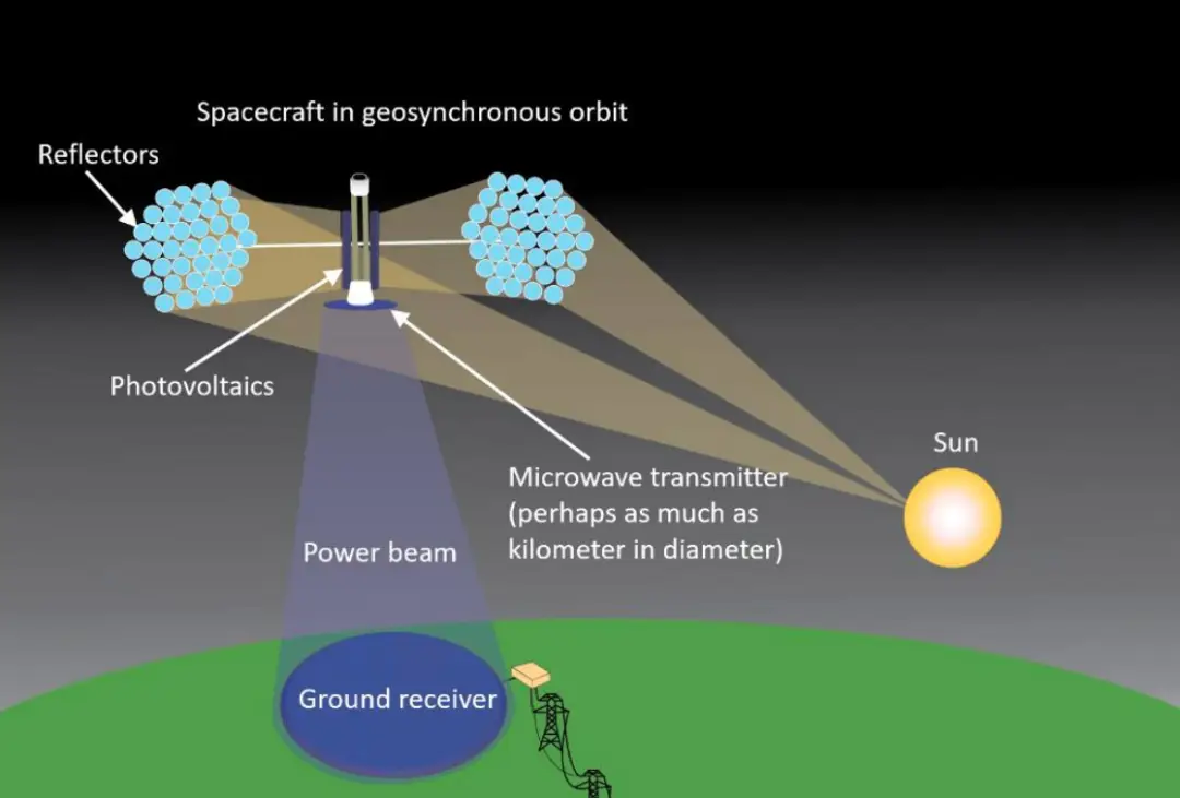早在上世纪70年代,欧美科学界就提出在近地轨道或地球同步轨道部署超大规模太阳能阵列,在太空中持续发电,再通过微波或激光的方式把能量传回地面。
