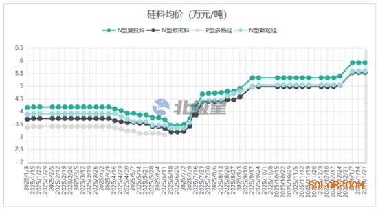 2025年多晶硅价格波动较大,7月以来报价开始上涨。硅料完全成本约为4.5万-5万元/吨,头部企业现金成本约2.5-3万元/吨,当前硅料价格正逐步向完全成本线靠拢。