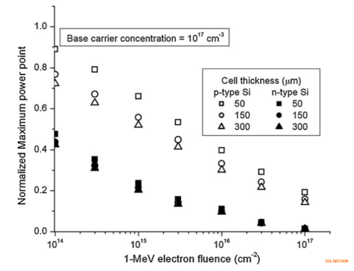 NASA 早期研究中指出,p型硅基电池在强辐射环境下相对n型硅基电池具备性能优势,经测试p型硅基电池耐受1MeV电子辐照的能力,最高可达n型硅基电池的10倍;其对质子辐照的敏感度,也较n型硅基电池低3-8倍。