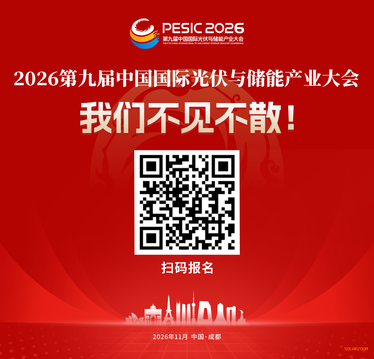 随着“十五五”能源发展蓝图徐徐展开,2026第九届中国国际光伏与储能产业大会将于11月17-20日在中国成都隆重举行,大会报名通道已正式开启。行业目光将再次聚焦成都,期待又一次的思想碰撞与产业交融。