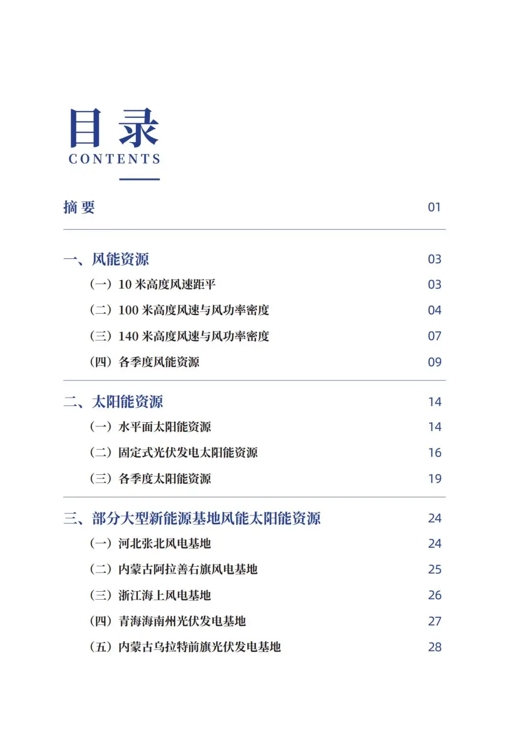 《公报》以国家能源局、中国气象局等六部门联合开展的“风电和光伏发电资源普查试点工作”所涉河北、内蒙古、浙江、青海等试点省(区)的部分大型新能源基地为例,分析其风能太阳能资源及年景变化情况。