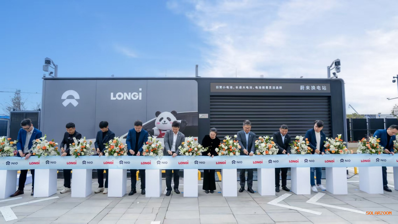 2月2日,隆基绿能与高端智能电动汽车品牌蔚来携手打造的“光储充换一体化项目——蔚来换电站 | 嘉兴隆基全球分布式研发中心”在浙江嘉兴正式落成。隆基分布式事业群副总裁、产品管理中心总裁吕远,蔚来能源总裁曲玉共同出席仪式并致辞,并由蔚来智能电动行政旗舰ET9完成了该光储充换电站的首换仪式,标志着这一集“光伏车棚、光伏围墙、光伏声屏障、蔚来光伏换电站”于一体的创新能源解决方案投入运营。