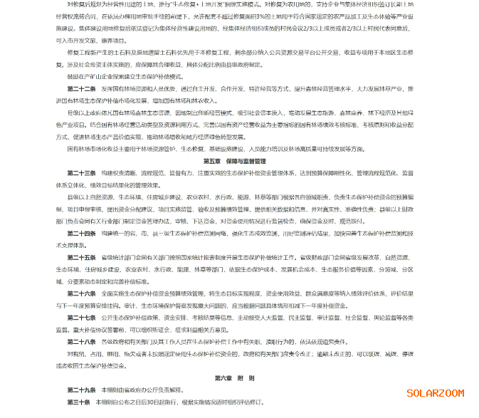根据文件,拟推动建立发电企业反哺机制,对水电、光伏企业按照发电量、营业收入一定比例或者碳汇损失量提取生态保护补偿金,专项用于生态修复、水资源高效利用等。