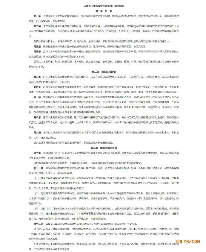 日前,云南省人民政府印发《云南省〈生态保护补偿条例〉实施细则》的通知。