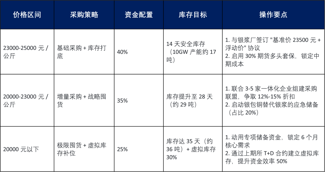 资金管控:白银采购资金占比≤20%,10GW产能月需求25吨对应资金约6 亿元,避免占用现金流影响扩产。