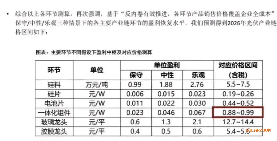 去年12月,光伏行业年度大会上,国金证券分析师提供的表格显示,明年组件的价格预计要上涨到0.88-0.99元/W,才能到达成本线。据国金证券推算,若各环节回归合理利润,组件价格很可能站稳0.9元/W,甚至向1元/W迈进。