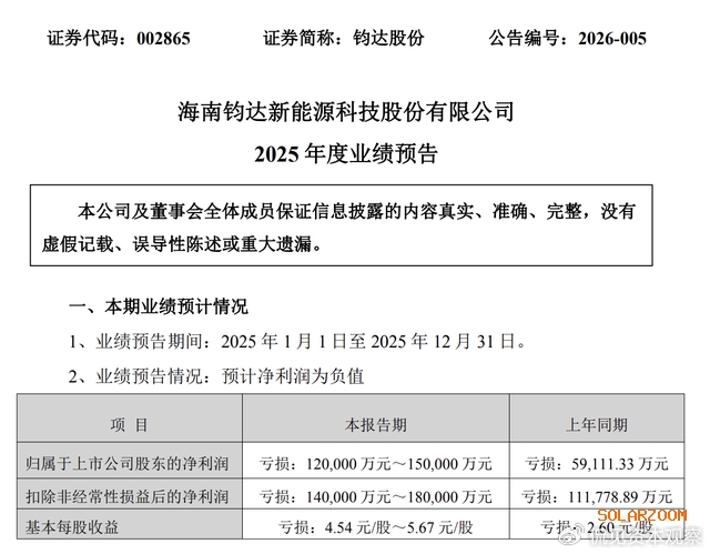 财报显示,2024年钧达股份的业绩明显下滑,其中实现营收99.52亿元,同比下滑46.66%;净利润为亏损5.911亿元,同比更是大幅下滑172.47%。到2025年,其经营状况进一步恶化,净利润预计亏损12亿元至15亿元,相比去年亏损加剧。