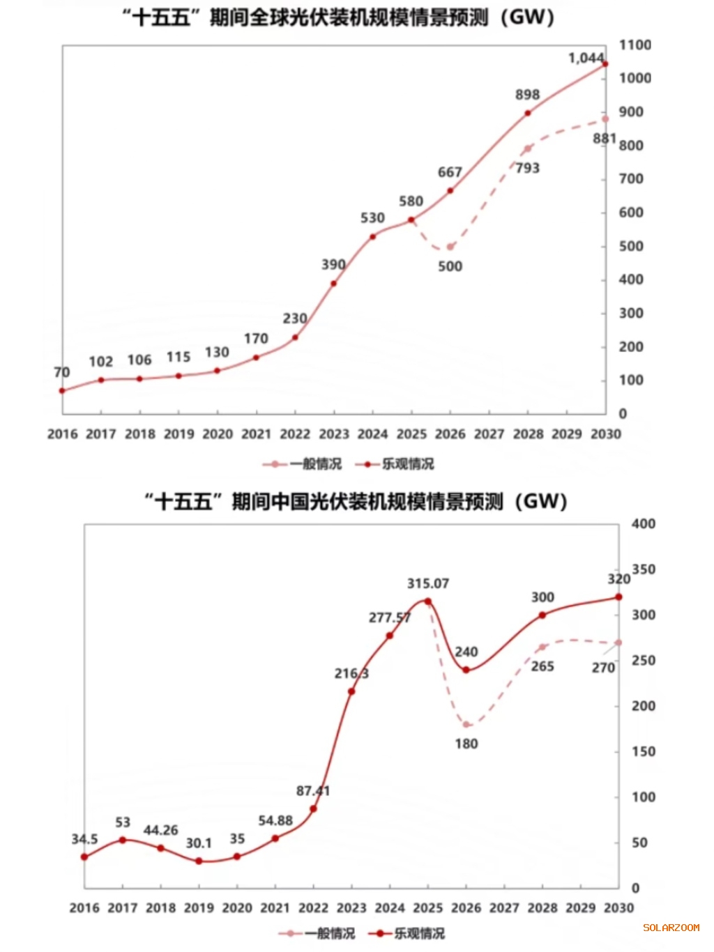 中国光伏行业协会顾问王勃华在2月5日举行的“光伏行业2025年发展回顾与2026年形势展望研讨会”上预测,“十五五”期间,全球年均光伏新增装机规模为725-870GW,中国年均光伏新增装机规模为238-287GW。2026年,全球新增光伏装机预计为500-667GW,中国新增光伏装机预计为180-240GW。