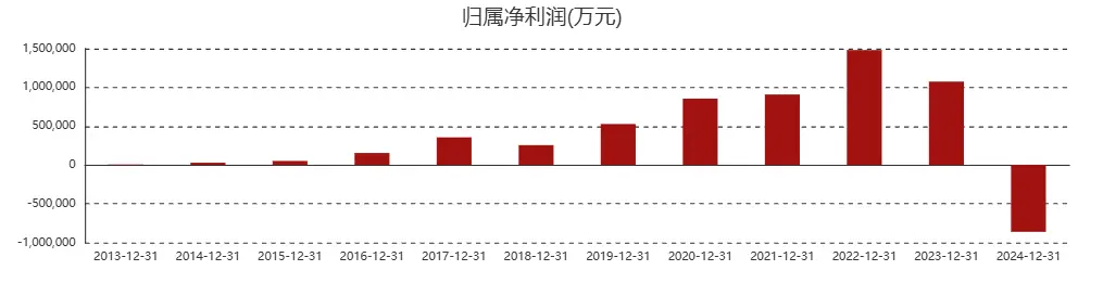 这个亏损啥概念呢?从过往数据看,这是隆基绿能近10年来的首次年度亏损,且创下有史以来最大幅度亏损。