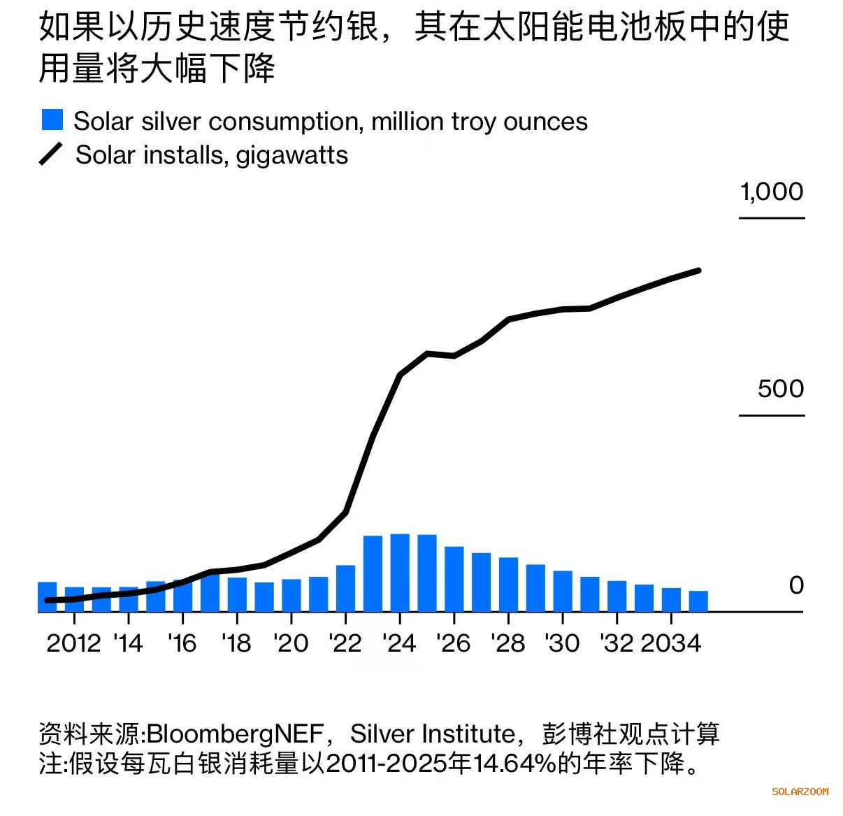 如果假设这种节约趋势持续下去,那么到2035年,即便全球太阳能装机规模比现在再高三分之一,所需的白银总量也可能只有去年的四分之一。按照这个推演,白银市场看起来像是在为一个即将到来的供过于求提前欢呼,价格自然站不住。