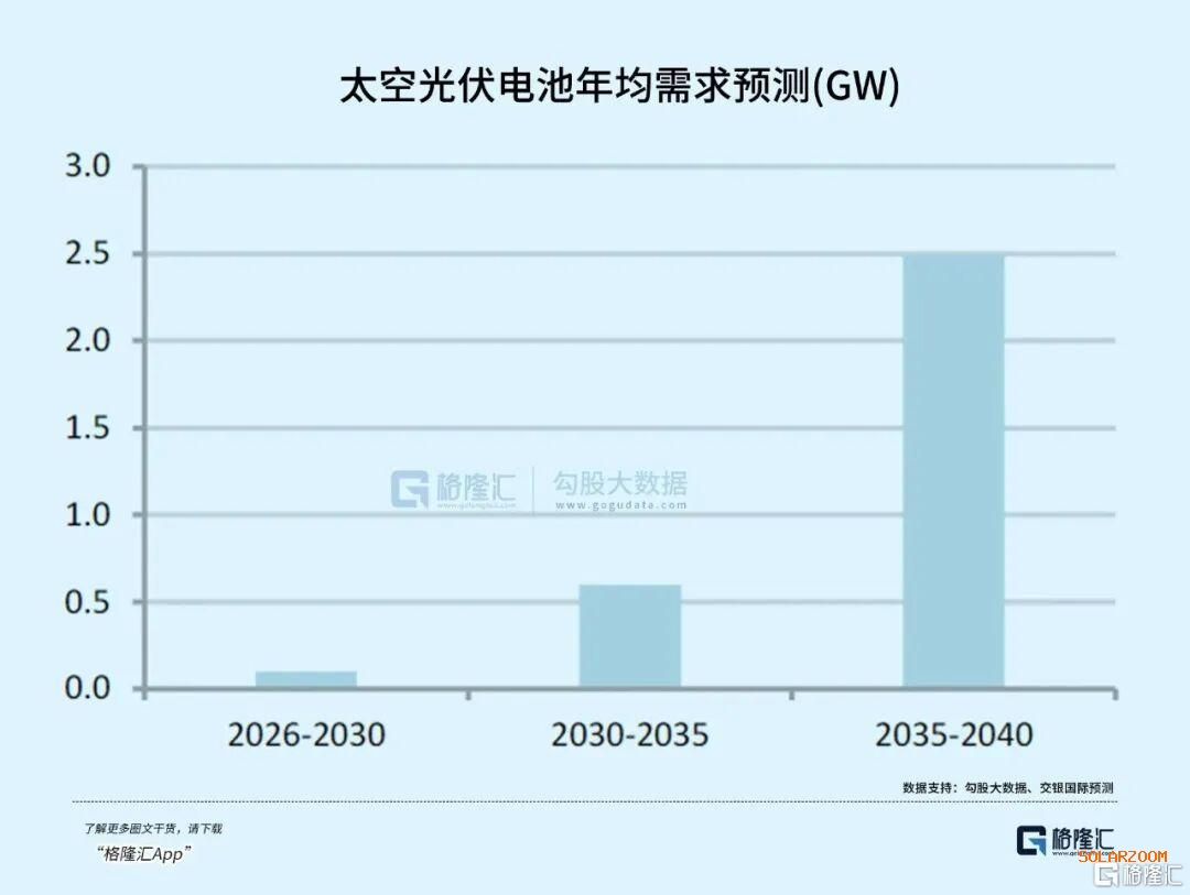 根据测算,2026-2030年全球太空晶硅和钙钛矿光伏电池年均市场空间约30亿元,2030-2035年将增至120亿元,2035-2040年进一步提升至250亿元,保持较快的增长速度。而且太空光伏电池对性能要求严苛,技术壁垒远高于地面光伏,相关企业的产品单价和单位利润也远高于地面光伏业务,盈利表现亮眼。