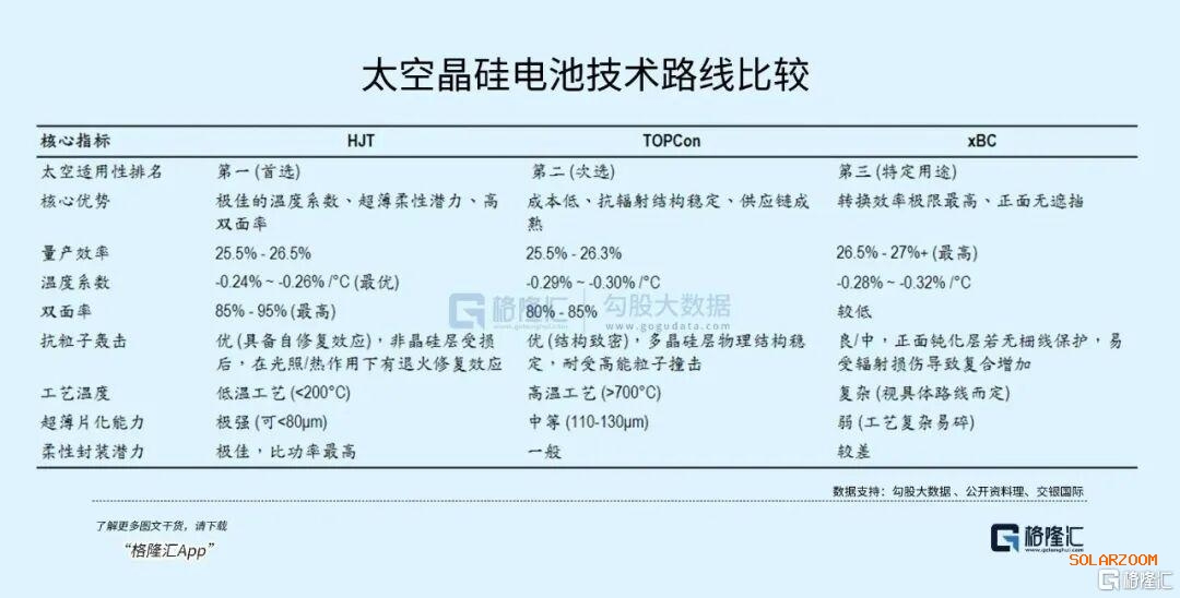 在晶硅电池的技术路线中,HJT也是最适配太空的选择,其温度系数低,在太空极端温差环境下发电更稳定,还能实现超薄片化,大幅提升比功率,同时高双面率能有效利用地球反照光,完美契合低轨卫星的能源需求。
