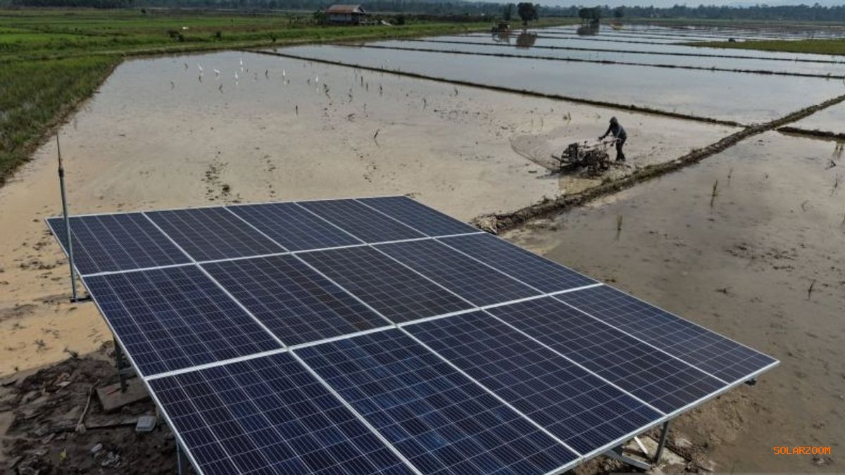 2026年1月31日星期六,在东努沙登加拉省南科纳韦摄政区的孔达区,农民在太阳能电池板附近耕种田地。