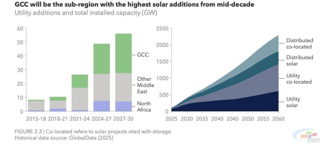 据挪威船级社(简称“DNV”)在其发布的《海湾地区可再生能源崛起》报告中预计,至2040年,中东北非地区将新增860GW的太阳能光伏装机规模。