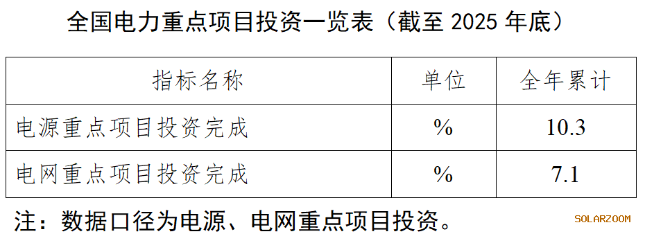 截至2025年底,全国电源重点项目投资同比增长10.3%,电网重点项目投资同比增长7.1%,能源投资增速与主要行业相比处于较高水平。