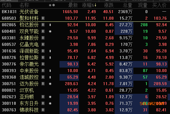 2月27日早盘,光伏设备概念股走高,太空光伏方向活跃。截至10时37分,钧达股份、双良节能涨停,亿晶光电、拉普拉斯、迈为股份等多股跟涨。