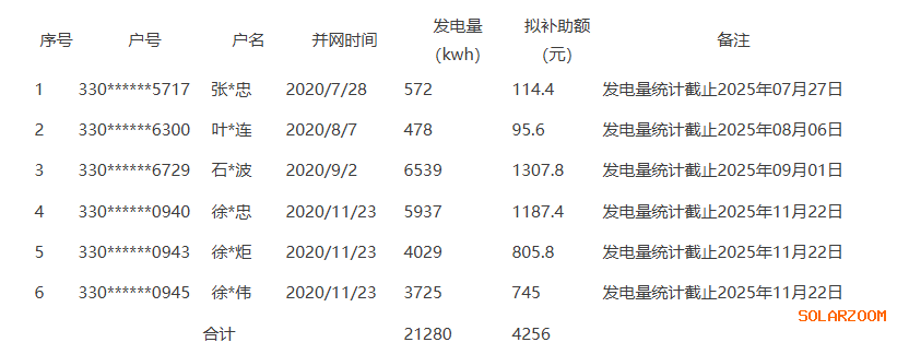 根据上虞供电局提供的上虞区居民家庭屋顶光伏项目户主信息及2025年7月至2025年12月的发电量等信息,经审核,现将补贴兑现建议方案予以公示,从公示之日起,公示期限三天。如有异议,请与区发改局联系,联系电话82313885。