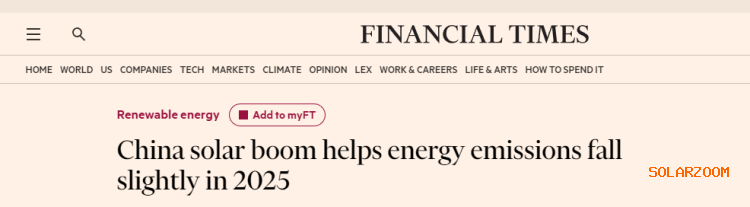 英国《金融时报》日前发文称,2025年,太阳能的蓬勃发展促使中国的碳排放量有所下降。