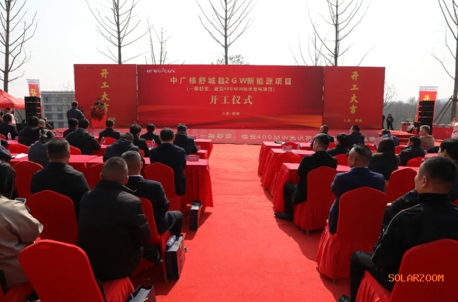 记者获悉,3月10日,中广核安徽舒城县2GW新能源项目(一期舒安、启安400MW光伏发电项目)正式开工。