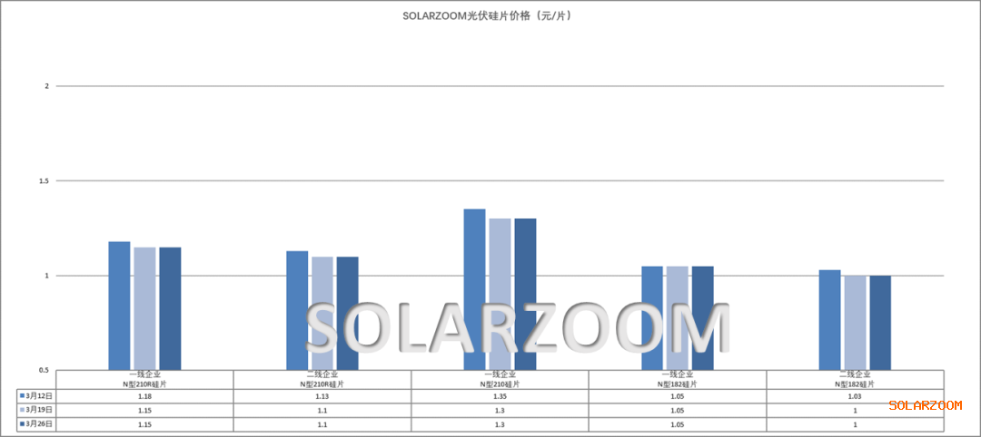 各尺寸硅片价格区间仍落在1-1.05、1.1-1.13、1.28-1.33元/片区间,而实际成交上更多趋于1、1.1、1.3元/片的价格,同时部分企业抛库存压力下各尺寸硅片也有更低的价格出现。当前硅片库存压力未有明显缓和,上下游环节价格在持续走弱,终端需求能见度有限,传导之硅片环节场对硅片价格的走势、需求也均存观望,整体硅片价格支撑力度薄弱。HJT硅片方面,下游HJT电池有产线陆续开线,对应HJT硅片需求有提升,HJT半片价格近期价格虽有小幅下调但幅度有限,HJT半片硅片成交价格在0.65-0.68元/片左右。