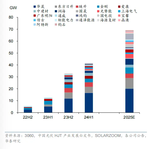 国内企业东方日升从2019年就开始布局HJT,2023年,国内规划布局HJT电池生产线的公司就有近50家。