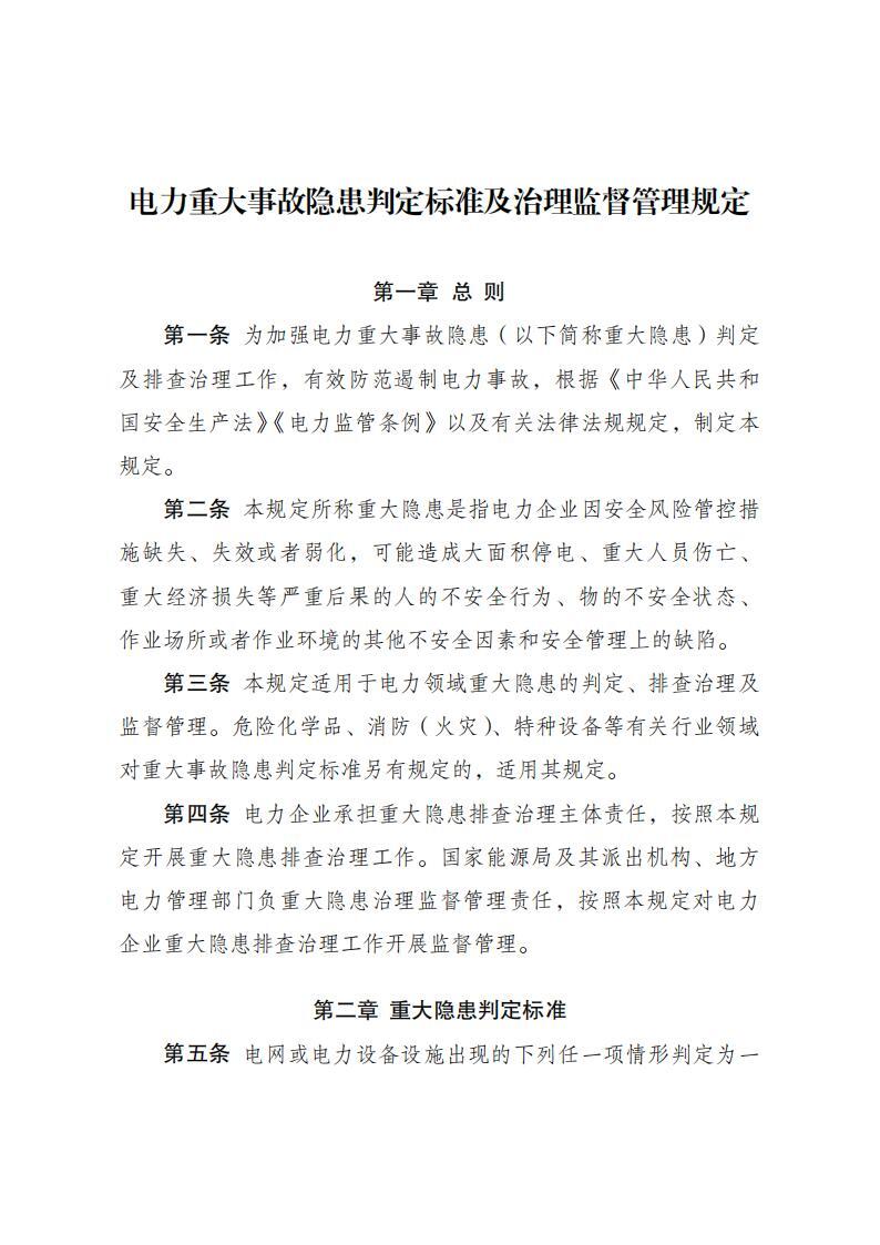 《电力重大事故隐患判定标准及治理监督管理规定》 2026年第41号令