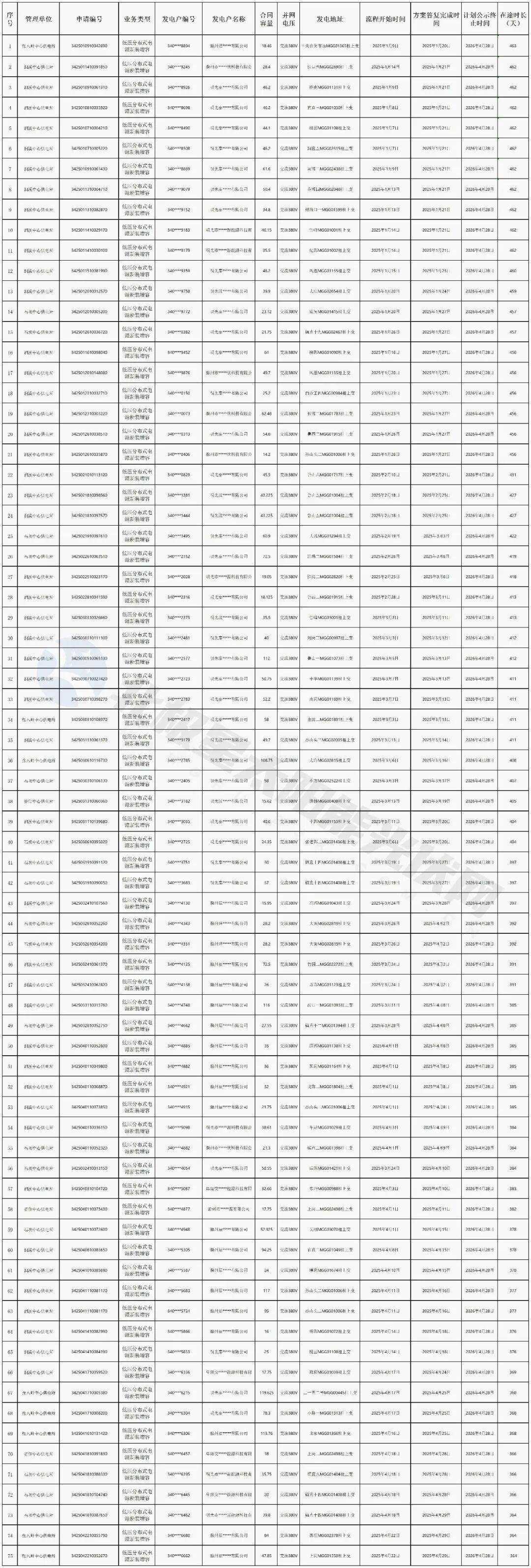 明光市取得电网接入意见后12个月内未建成并网的项目清单