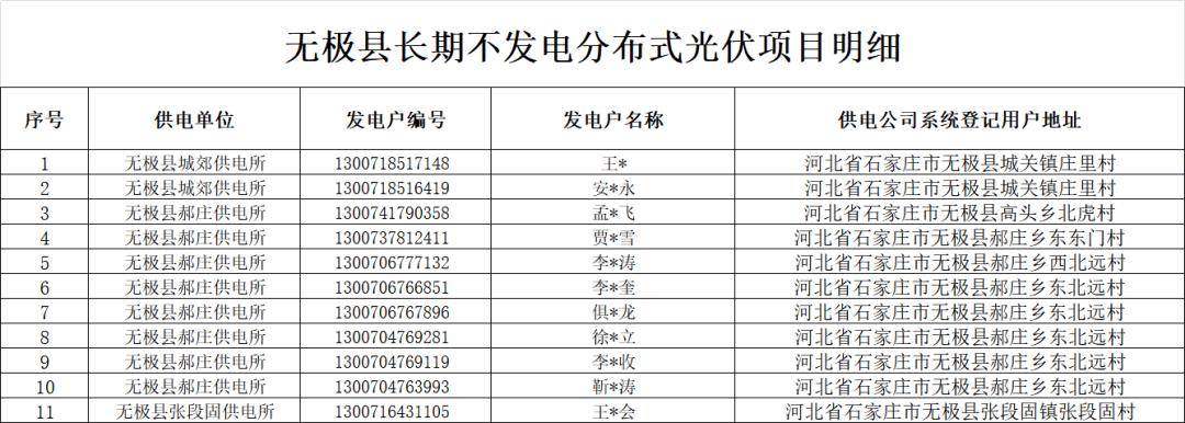 无极县长期不发电分布式光伏项目明细