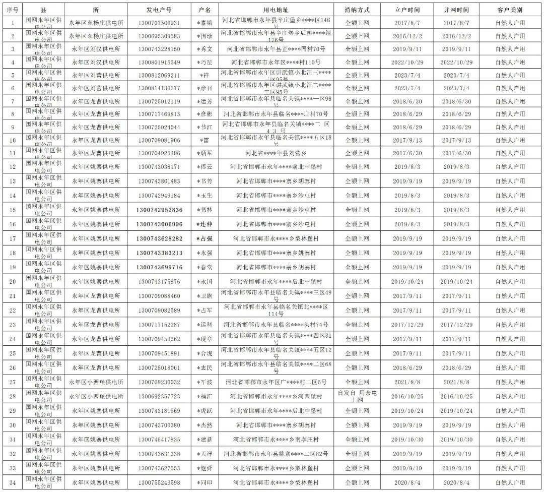 永年区连续六个月不发电分布式光伏项目清单