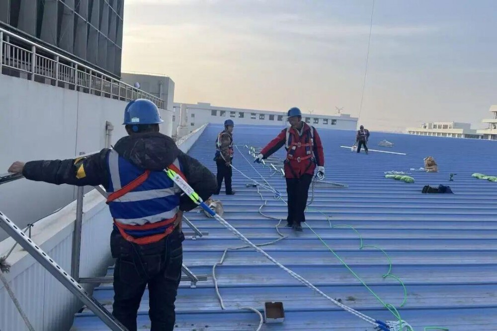 自开工建设以来,项目团队坚持高标准起步、严要求推进,克服工期紧、作业面分散、屋顶物料转运困难等诸多挑战,以实干担当推动项目稳步落地。项目团队不断优化施工组织流程,科学统筹工序衔接,针对屋顶作业特点,创新采用无人机吊运光伏夹具及组件,既有效提升了作业效率,又大幅减少了高处作业人员流动,最大限度保障施工安全。