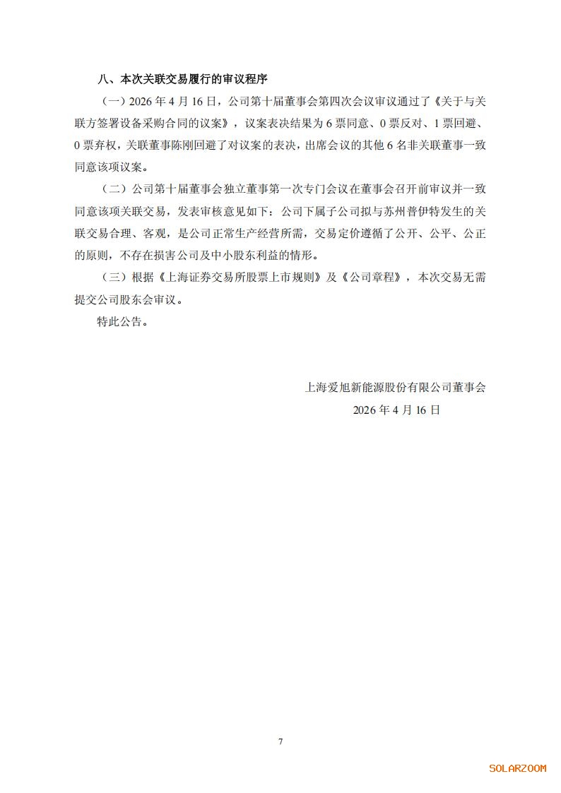 4月17日,爱旭股份发布关于与关联方签署设备采购合同的公告。