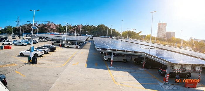 “光伏+停车”项目的落地,既是广州公交集团首个“光伏+停车”绿色能源项目,也是广州南站地区首个光伏停车场项目。光伏车棚兼具美观与实用,为车辆提供大面积遮阳空间,让旅客在候车、接站时告别日晒雨淋。