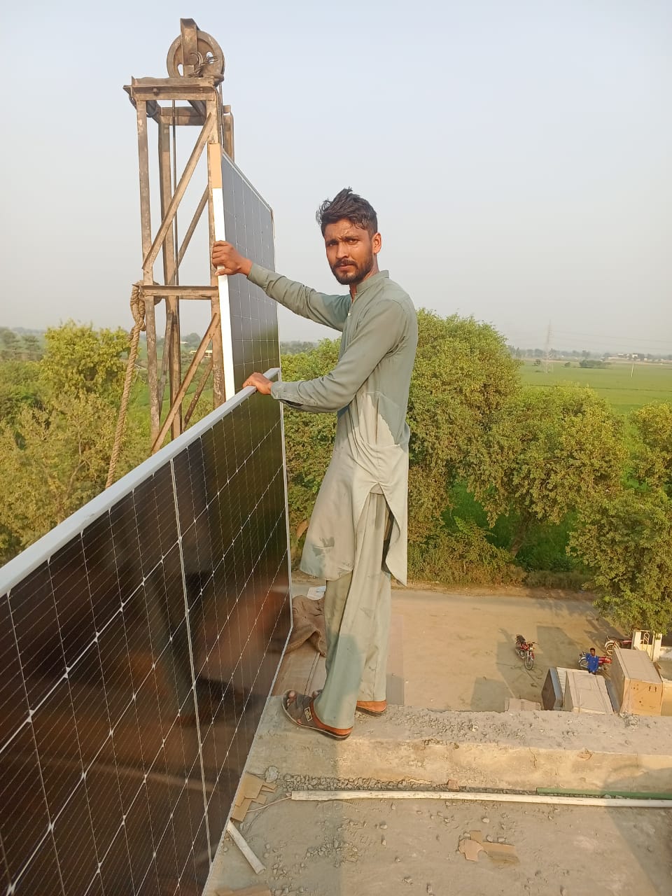 巴基斯坦旁遮普省农村地区,农户安装太阳能板。 黄晓娜摄