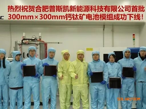 4月21日,合肥普斯凯新能源科技有限公司CVD干法中试线成功首跑300mm×300mm大面积PET衬底,全网首片CVD干法制程柔性钙钛矿电池模组顺利下线,标志着普斯凯在柔性钙钛矿光伏技术产业化领域实现关键突破,为第三代光伏技术落地应用奠定坚实基础。