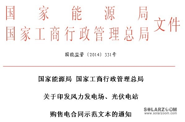 为适应可再生能源发展形势需要,促进风电、光伏发电科学发展,规范电网企业与风电、光伏发电企业之间购售电行为,根据《中华人民共和国合同法》、《中华人民共和国可再生能源法》等法律法规和国家有关规定,国家能源局和国家工商行政管理总局在充分组织讨论和广泛征求意见的基础上,制定了《风力发电场购售电合同(示范文本)》(GF-2014-0515)、《光伏电站购售电合同(示范文本)》(GF-2014-0517)(以下简称《示范文本》),现印发给你们,并就有关事项通知如下: