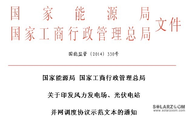 能源局、工商局联合印发风力发电场、光伏电站并网调度协议和购售电合同示范文本