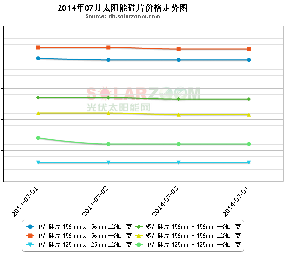 本周晶硅硅片市场价格弱势维稳。本周多晶156硅片一线企业报价周末与周初相比持平,二线企业报价周末与周初价格相 比不变;单晶156硅片一二线企业无变化。同样单晶156硅片一线企业报价维持高位不变,二线企业报价无明显变化。本周硅片价格仍处于弱势盘整,出货一 般,库存持续增加,下游企业资金压力加剧,不过企业心态一般,由于大部分企业都对7月给予厚望,均看好7月行情,故大部分在需求疲软的情况下,仍保持观望 状态,市场并没有见到太多低价甩货现象。但是行业整合加速,且波段性的市场需求,导致中小硅片企业,运营压力加大,虽然从去年不论硅片价格,还是出货均有 底部回升的趋势,但是对于不稳定的需求量考验着小企业的运营能力,贷款难,压库存,资金紧张等问题从近几个月有暴露了出来。预计下周市场仍维持弱势平稳。