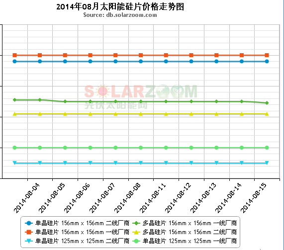 本周晶硅硅片市场价格小幅松动。本周多晶156硅片一线企业报价周末与周初相比平稳,二线企业报价周末与周初价格相比无变化;单晶156硅片一线价格无变化,二线价格无变化,多晶156硅片一线报价下0.76%,二线企业报价略微混乱。本周晶硅硅片价格继续小幅松动。 本周硅片市场整体成交偏淡,减产停产硅片企业开始增多,需求无法代工,出货维持低位。个别地区价格松动。在需求维持低迷的情况下,硅片现货价格弱势下行,低位价格成交较多,国内硅片生产企业信心不足,下游采购也并不积极,基本谨慎多观望,市场成交偏淡。临近周末商务部、海关总署发布公告决定自9月1日起暂停多晶硅加工贸易进口业务。据solarzoom了解今年上半年累计进口多晶硅 45932 吨,同比增加 17.4%,其中通过加工贸易进口量占累计进口总量的 74.2%。该项措施将使进口多晶硅在价格上失去竞争力,有效减少多晶硅进口量,有利于国内多晶硅企业,但是对于个别来料加工贸易的硅棒、硅锭及硅片企业来说,合作订单将被减少,企业唯有转型,开拓新的业务订单。