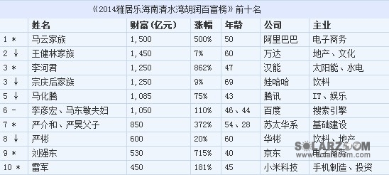 9月23日消息 今天上午,胡润研究院发布《2014雅居乐海南清水湾胡润百富榜》,总财富达到81,562亿元,比西班牙或韩国整个国家的GDP还高。前十名中连续两年有5位新人,分别是首富马云、排名第三的李河君、排名第七的严介和、严昊父子、排名第九的刘强东和排名第十的雷军。