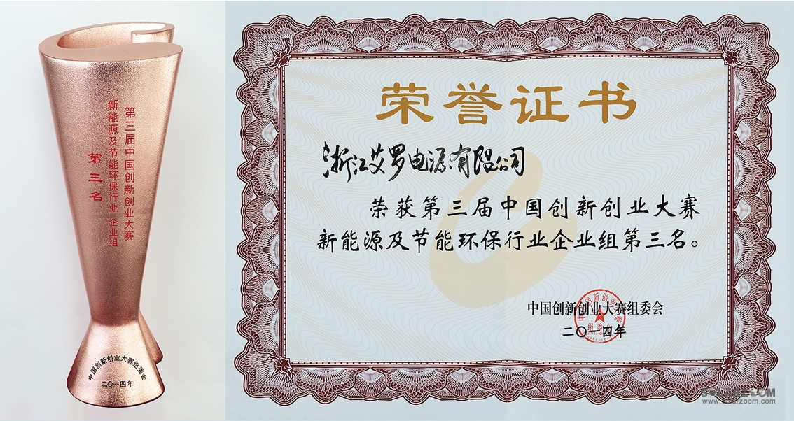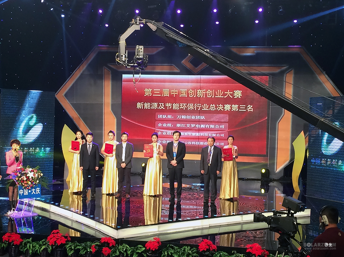 科技创新,成就大业!2014年10月15日,由国家科技部、教育部、财政部、全国工商联共同发起举办的国内规格最高的创新创业赛事--第三届中国创新创业大赛新能源及节能环保行业总决赛在黑龙江省大庆市落下了帷幕。本次新能源及节能环保行业总决赛汇集了来自全国的88家企业和28个团队,通过异常激烈的半决赛和决赛角逐仅有的第一、二、三名。代表浙江赛区出战的桑尼能源子公司浙江艾罗电源有限公司一路披荆斩棘,最终以90.32的高分位居浙江省参赛企业首位,斩获全国第三名的殊荣,也是唯一获得全国前三的光伏行业企业,为浙江赛区创造了辉煌,为光伏行业树立了标杆。