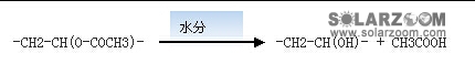 EVA 树脂的正式名称为乙烯-醋酸乙烯酯共聚物,光伏组件用的EVA 中的醋酸乙烯酯含量通常在28-33%。酯作为一种常见的化学键有一个最基本的性能,在有水的情况下会分解成酸和醇。