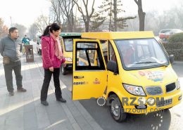12月23日,省城迎泽大街,几辆供人免费乘坐的太阳能“微公交”引起路人关注。省城几名大学生设计开发了太阳能“微公交”,并开展了“0元微公交招手即停”活动。20辆免费太阳能“微公交”在太原街头开行两天。