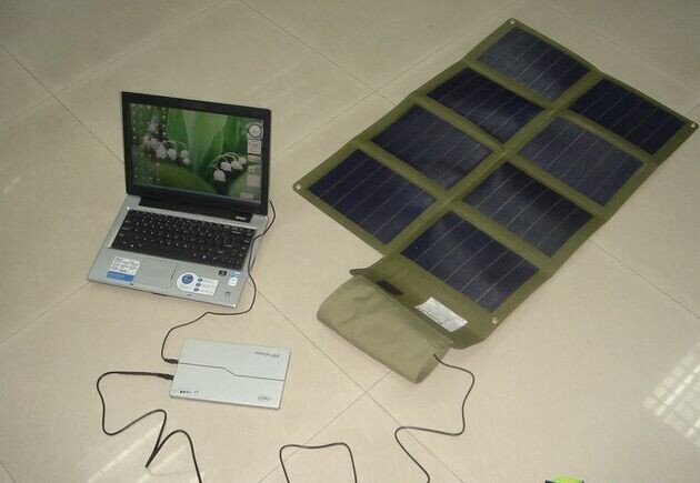 笔记本是可以折叠的,可以增加一倍的面积来接收太阳能。采用折叠的方式,也有更多的可能。这样我们每个小时就可以接受到不超过100w的电能。但是这样牺牲很多的东西才可以实现。笔者在淘宝搜索了一下大约面积的太阳能电池板,其重量在2kg的水平。这样的重量几乎和笔记本一样重要了。因此采用双面充电的太阳能电池板,笔记本肯定就没有便携性。