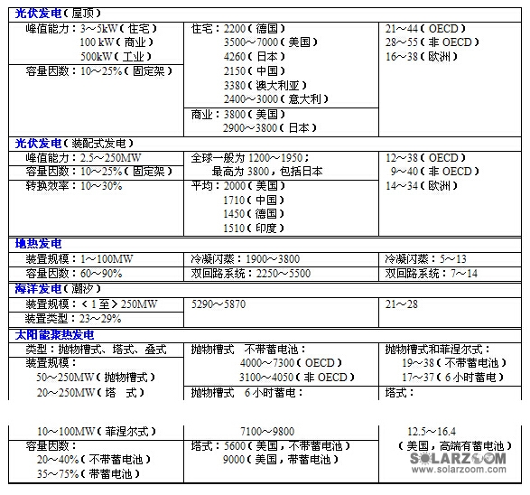 那么,生物质发电、太阳能光伏、地热、聚热发电和海洋能发电等生产成本如何呢?