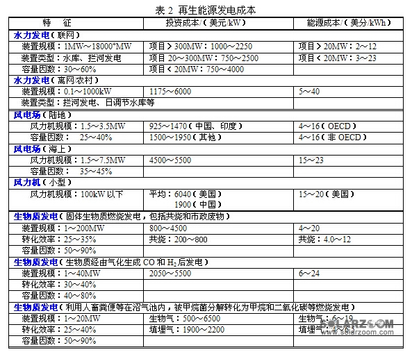 REN21(Renewable Energy Policy Networkforthe 21st Century)发布的《Renewables 2014 Global Status Report》报告,这是能源研究者必看的再生能源发展的年度报告。再生能源价格是重要的内容之一,现把它列于表2。表中常见有两个术语: