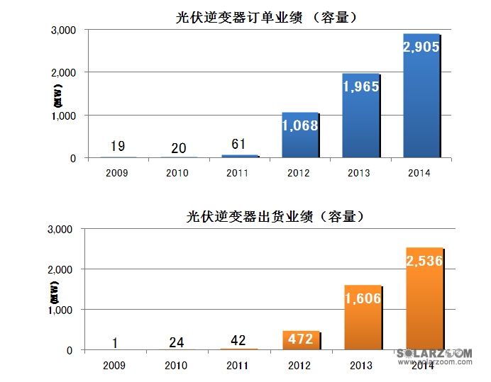 总订单容量和出货容量同比增长1.5倍。2009年度以来,TMEIC累积订单容量和出货容量分别达到6GW和4.6GW。