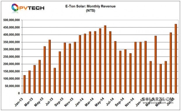 台湾太阳能电池生产商益通光能科技(E-Ton Solar Tech)报告,七月销售额创纪录,突破其此前在2014年五月创立的最新纪录。