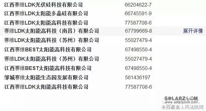 记者初步了解,除了合肥高新技术产业开发区社会化服务公司10亿元较大案件外,赛维与东方电气集团(宜兴)迈吉太阳能科技有限公司于2010年12月1日签订的《硅片销售合同》已解除。赛维LDK应向东方电气返还定金53155706.65元,但LDK并未返回定价。其余8起案件数额从几十万到千万不等。法院认定赛维有履行能力而拒不履行生效法律文书确定义务。