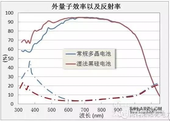 与常规的多晶电池相比,湿法黑硅电池不同之处在制绒这一工序,由于同样采用湿法化学腐蚀工艺,与现有的常规电池工艺能很好的兼容。而RIE黑硅是在常规酸腐蚀后,再进行RIE形成纳米绒面,最后通过化学腐蚀去除硅片表面的残留物和离子轰击带来的损伤层。比常规多晶电池制程,增加了至少两道工序。